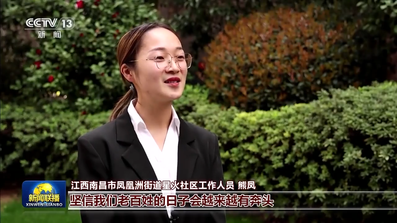 江西南昌市凤凰洲街道星火社区工作人员 熊凤:有习近平总书记掌舵领航,坚信我们老百姓的日子会越来越有奔头。我们要立足本职岗位,勇挑重担,撸起袖子加油干。