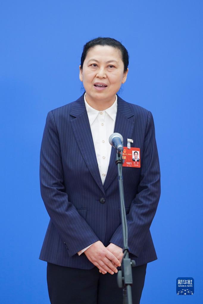 3月12日,第十四届全国人民代表大会第一次会议举行第三场“代表通道”采访活动。这是全国人大代表冯丹接受媒体采访。新华社记者 才扬 摄