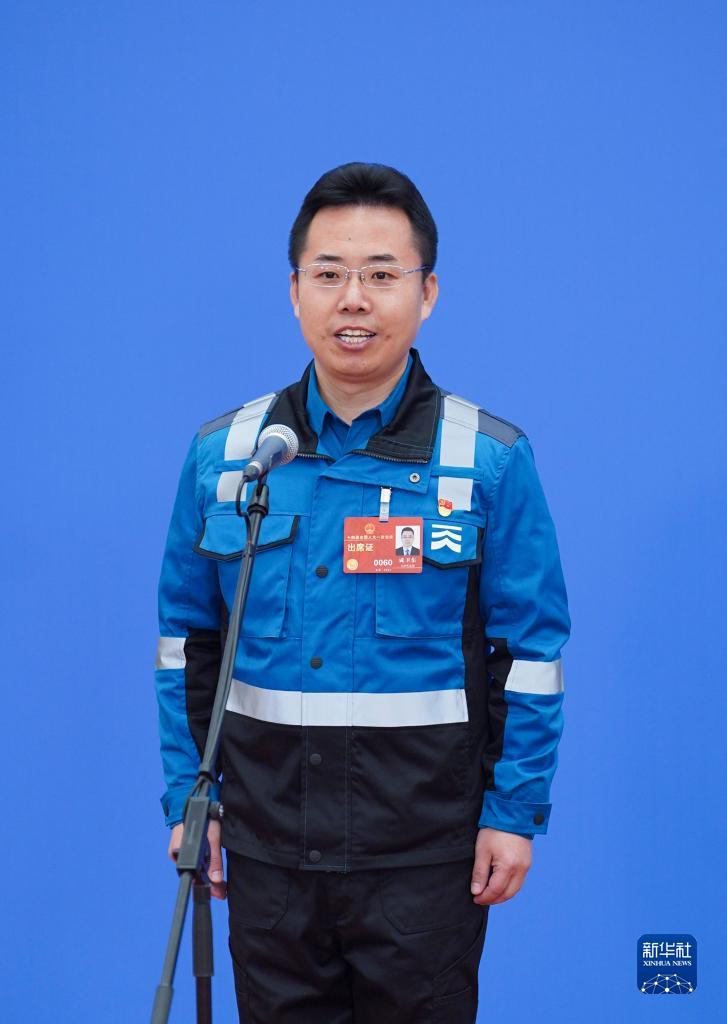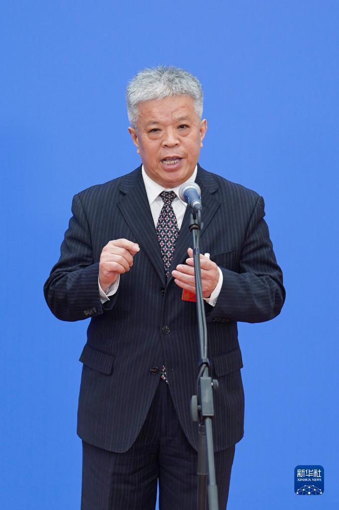 3月12日,第十四届全国人民代表大会第一次会议举行第三场“代表通道”采访活动。这是全国人大代表成卫东接受媒体采访。新华社记者 才扬 摄