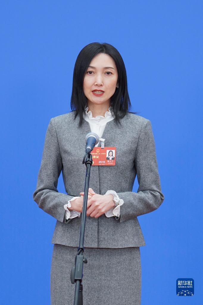 3月12日,第十四届全国人民代表大会第一次会议举行第三场“代表通道”采访活动。这是全国人大代表陈天竺接受媒体采访。新华社记者 才扬 摄