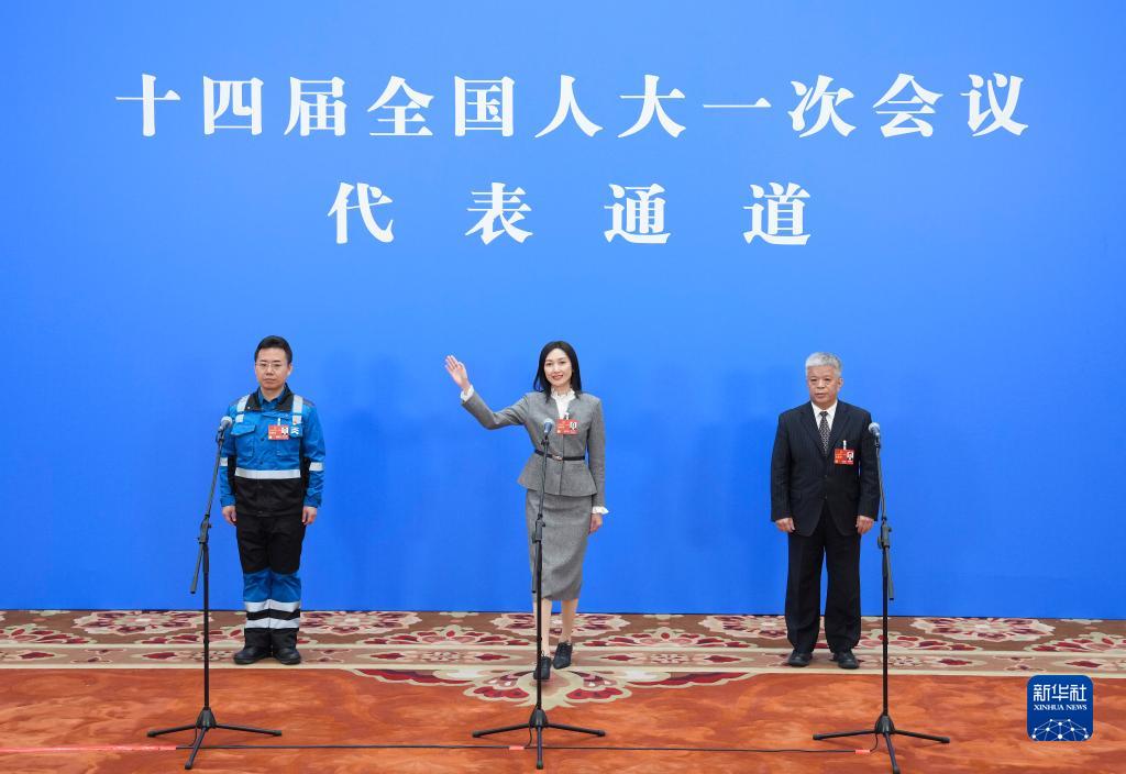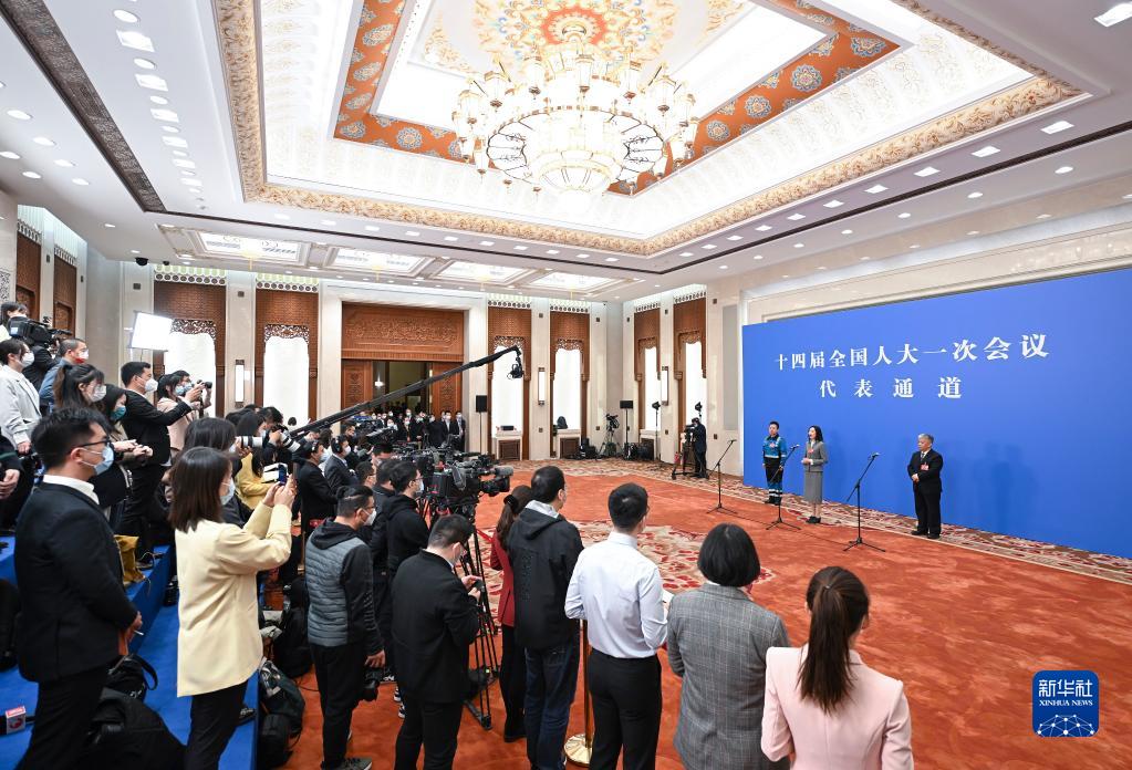 3月12日,第十四届全国人民代表大会第一次会议举行第三场“代表通道”采访活动。新华社记者 张豪夫 摄