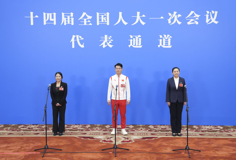 全国两会期间,人民大会堂新闻发布厅,十四届全国人大一次会议的三场“代表通道”如约开启。