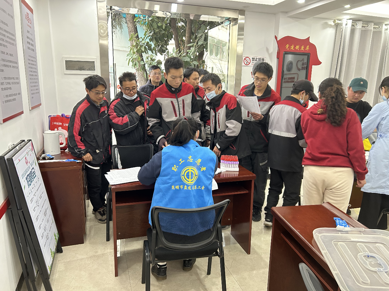 活动前期,为确保暖心关爱真正落地落实见成效,赢得职工认可,聚焦新就业形态劳动者群体流动性强、分散化、工作时间场所不固定的职业特点,区总工会多次与盘龙区人民医院对接体检模式、体检时间等细节,联动覆盖全区的12家街道新就业形态劳动者工会联合会深入新就业形态劳动者集中区域开展调研、协调场地,在充分掌握新就业形态劳动者实际需求和情况后,区总工会首次创新“加入工会 预约关爱 服务上门”机制,通过新就业形态劳动者在就近社区加入工会即可预约体检服务配送上门的形式,首次尝试移动体检的方式,让新就业形态劳动者预约工作较为空闲的时间段在最近的站点利用回站点取包裹、外卖配送高峰前的最短时间高效完成体检,实现体检地点跟着新就业群体工作地点移动,工会服务跟着新就业形态职工需求拓展。