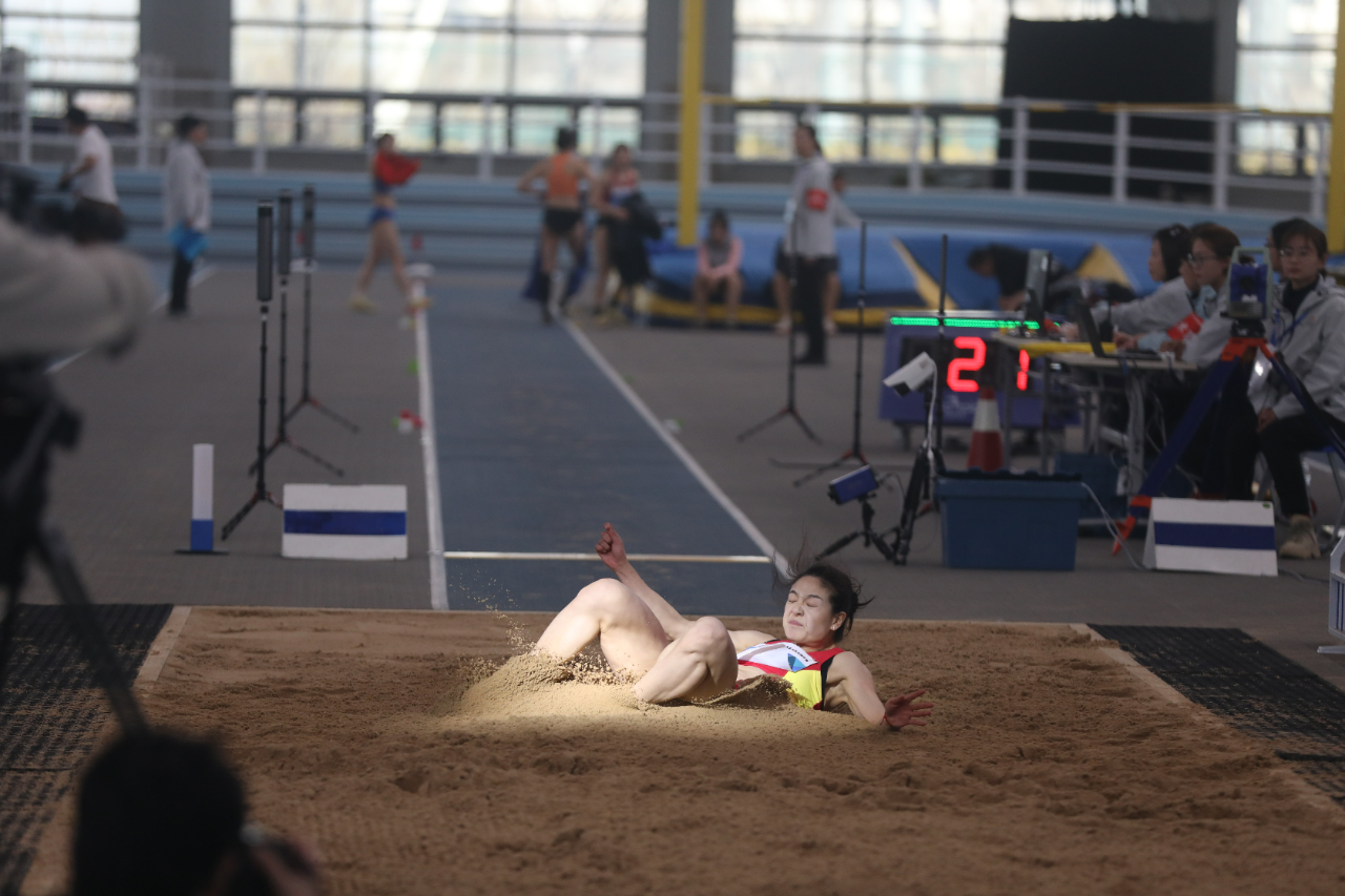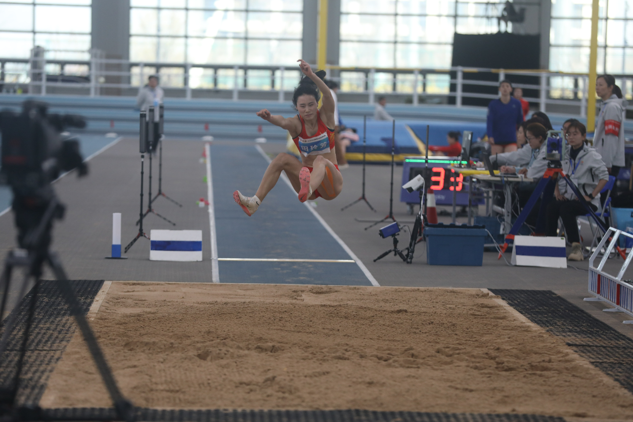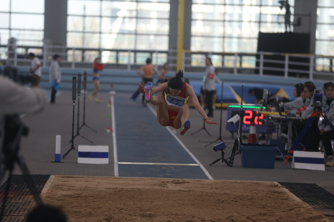 3月15日上午,2023年全国田径室内锦标赛在天津团泊体育馆拉开帷幕。首先决出胜负的项目是女子跳远,来自吉林的郭思佳凭借在第五跳跳出的6米47的成绩,成功拿下冠军。来自江西的钟嘉未以6米45的成绩获得第二名,2021年陕西全运会女子跳远冠军龚璐颖以6米39的成绩获得第三名。