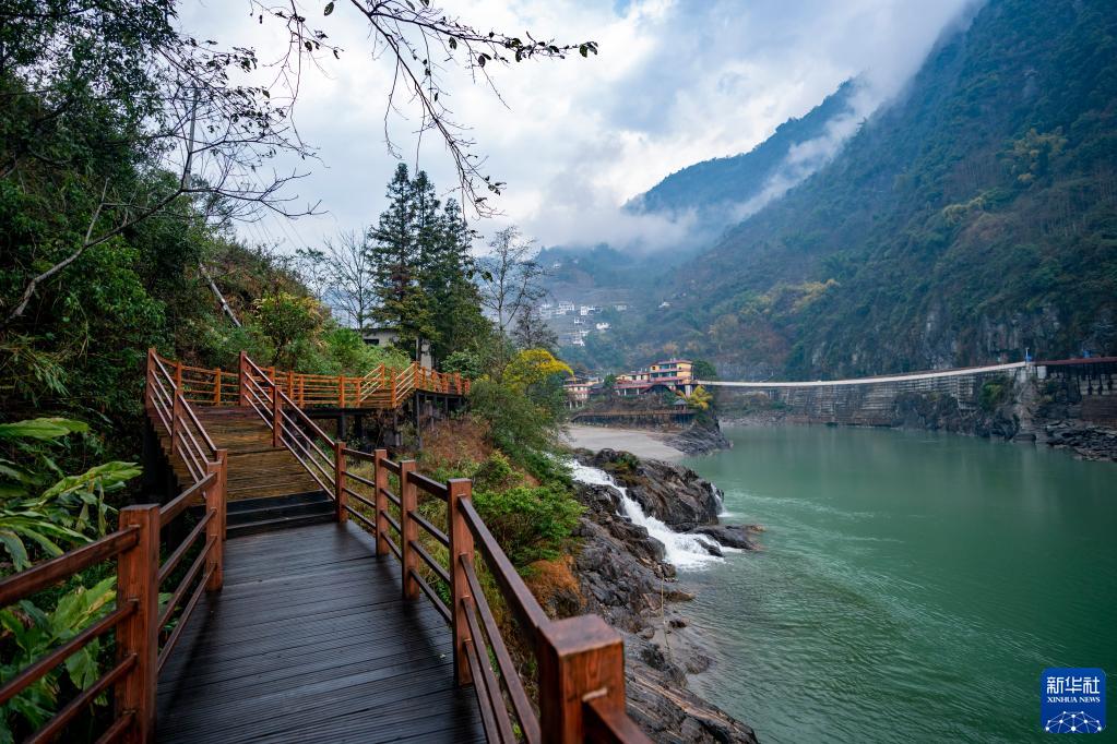 这是2月22日拍摄的云南省福贡县施底村秘境湾景点的沿江步道。新华社记者 陈欣波 摄