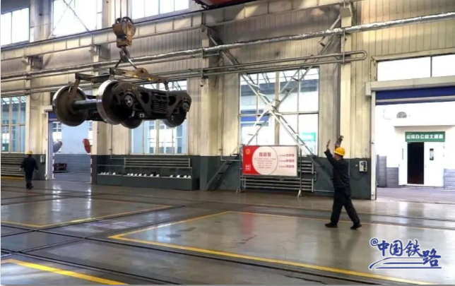 转向架是车辆的走行部,犹如人的双腿。它们会被天车高高吊起,运送往检修车间台车库进行全面检查。