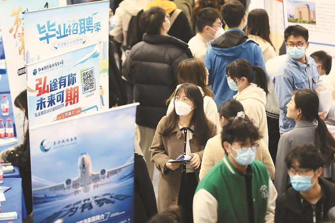 昨日,江苏2023届高校毕业生春季促就业攻坚行动暨江苏百校联动系列招聘会在东南大学举行,近500家用人单位参加,累计提供岗位3.9万个。新华日报记者 刘莉 摄