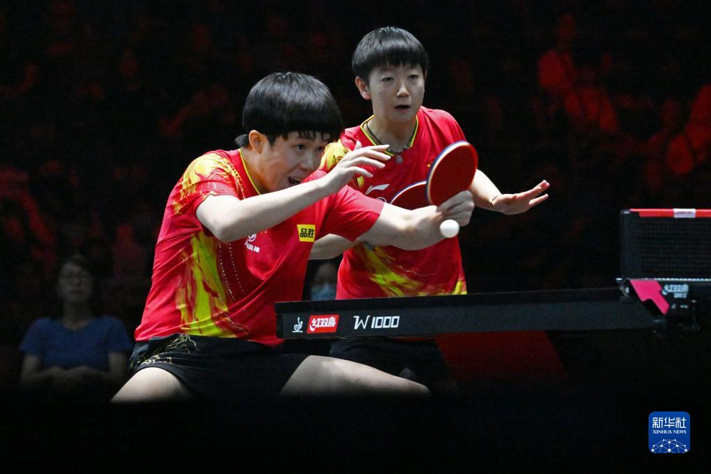 3月16日,王楚钦(左)/孙颖莎在比赛中。新华社发(邓智炜摄)