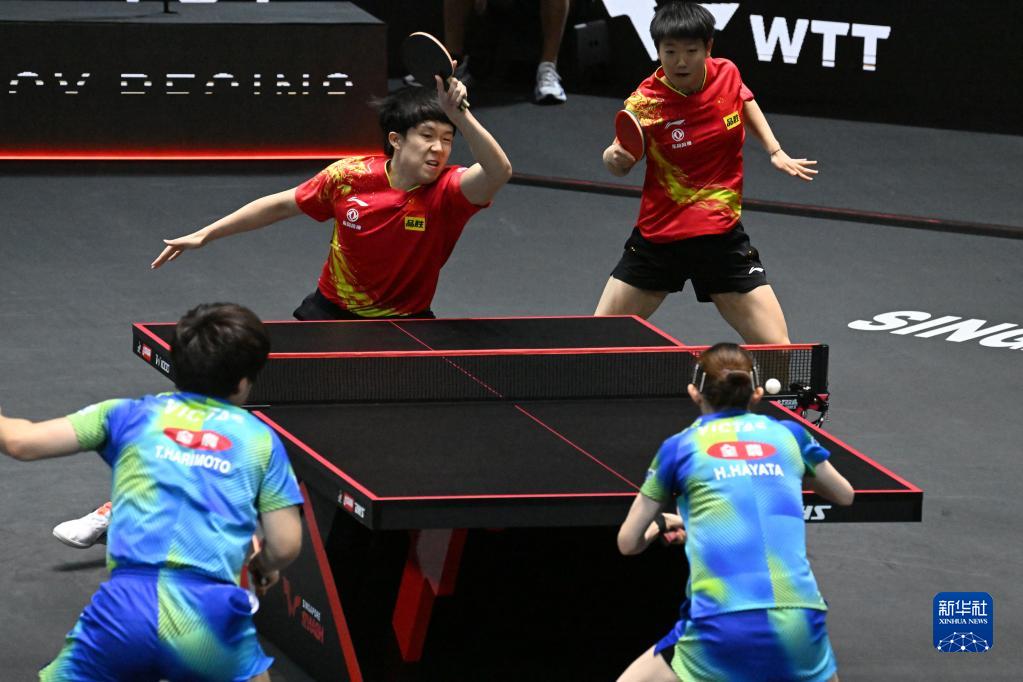 当日,在WTT新加坡大满贯混双决赛中,中国组合王楚钦/孙颖莎以3比1战胜日本组合张本智和/早田希娜,夺得冠军。