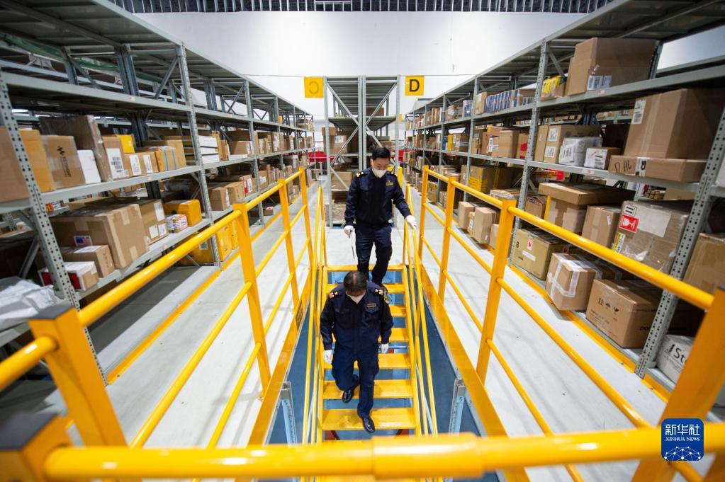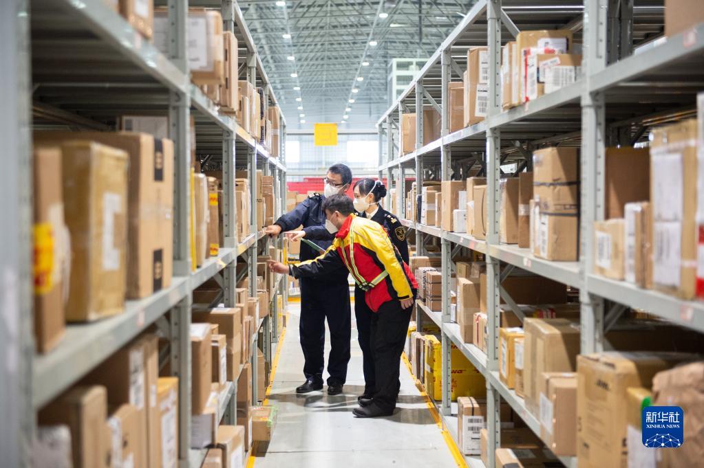 3月20日,首都机场海关关员在一家快件企业的海关监管仓库巡查。新华社记者 陈钟昊 摄
