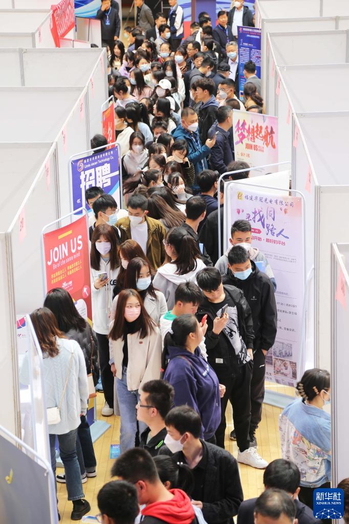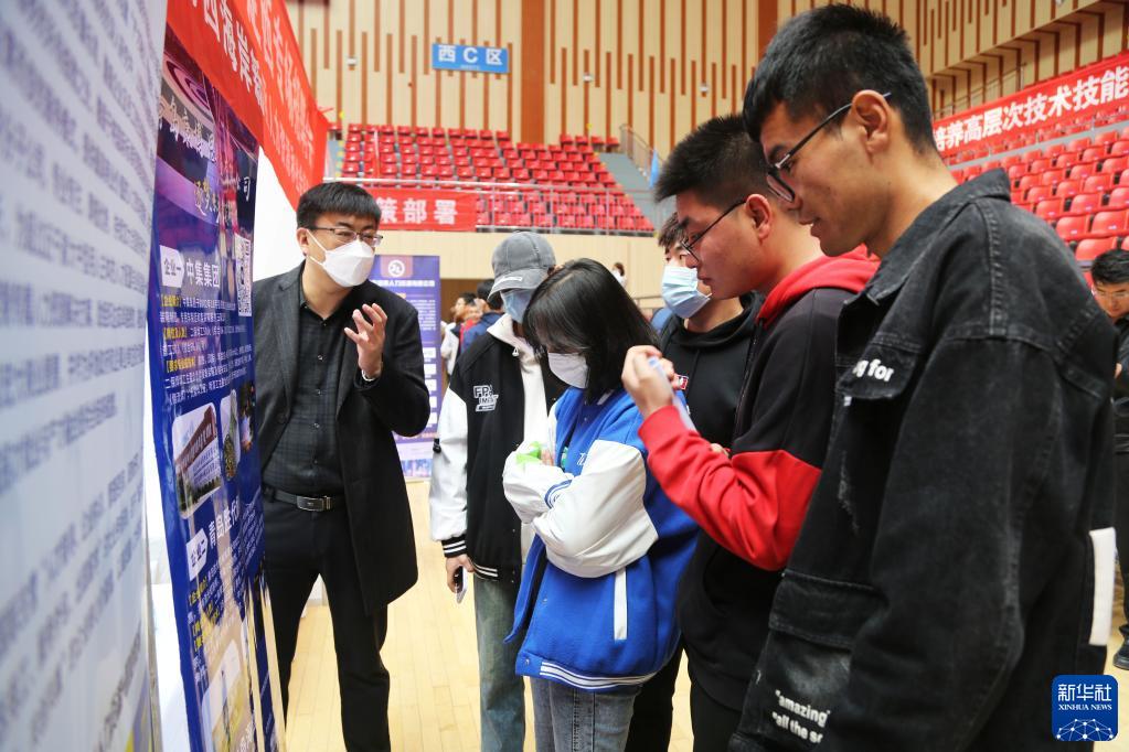3月20日,求职者在招聘会上与用人单位工作人员沟通。新华社发(王克贤 摄)
