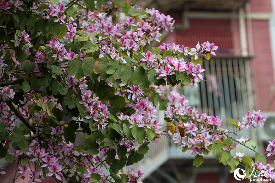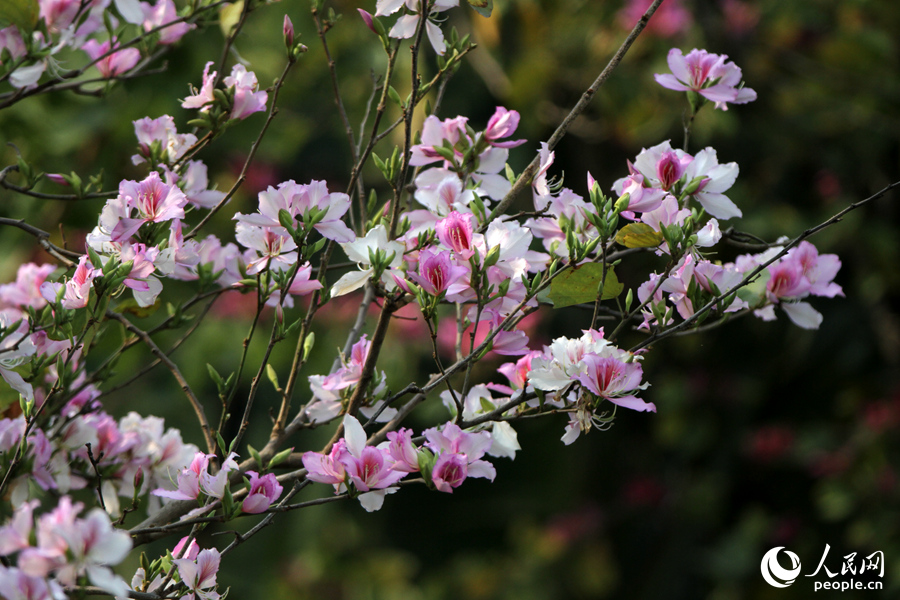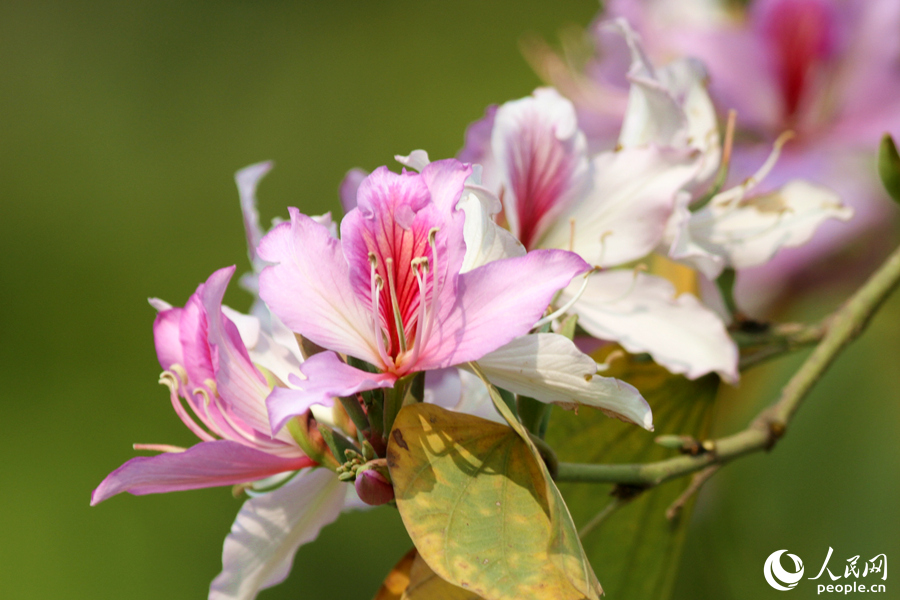 宫粉羊蹄甲叶片似羊蹄,花开似蝶舞。人民网 陈博 摄