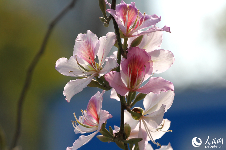 阳光透过宫粉羊蹄甲花瓣,显得更加娇嫩欲滴。人民网 陈博 摄