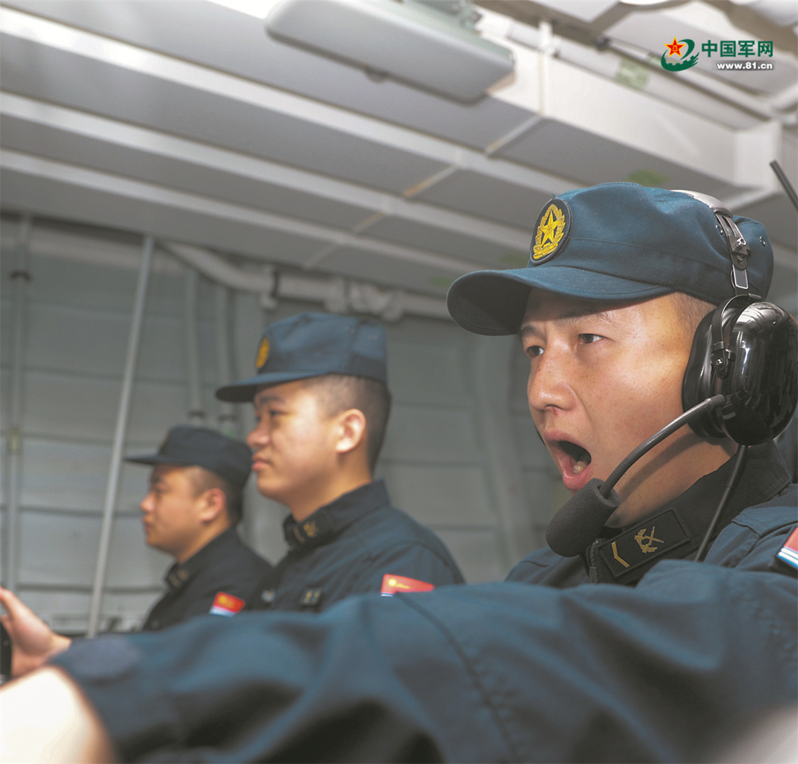 “发现‘敌’机!”舰艇雷达兵捕捉到目标后,迅速上报指挥所。一声令下,各型防空武器梯次开火。海空之间,回荡着隆隆炮声……