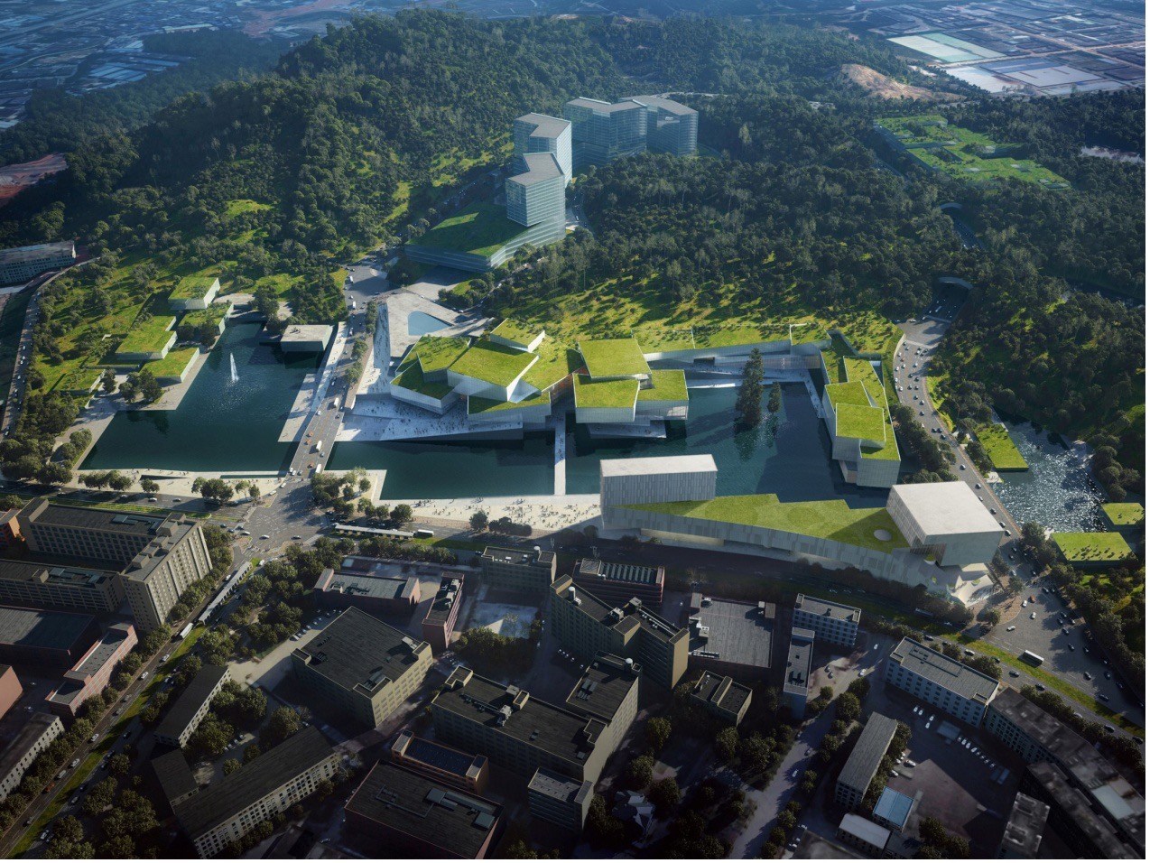 龙华区图书馆、群艺馆、大剧院位于深圳市龙华区平安路南侧、观澜人民路东侧,项目总占地面积约4.78万平方米,总建筑面积约18.3万平方米。