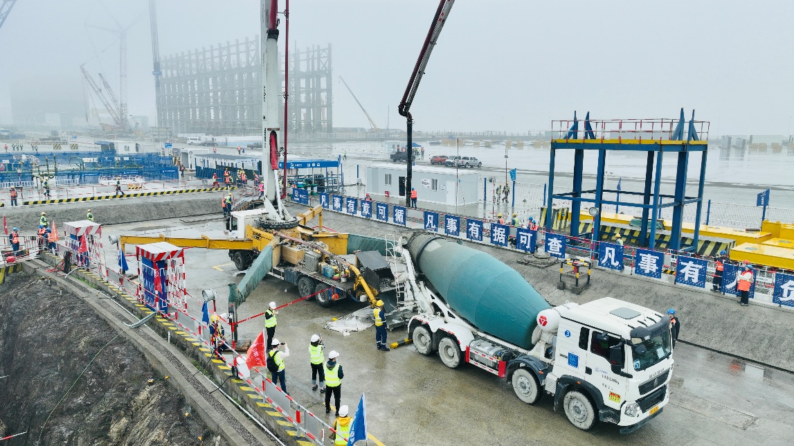 三门核电4号机组浇筑核岛第一罐混凝土。人民网记者 栗翘楚摄