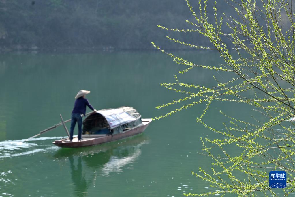 3月22日在贵州省黔东南苗族侗族自治州锦屏县三江镇清水江岸边拍摄的垂柳。新华社发(李斌摄)