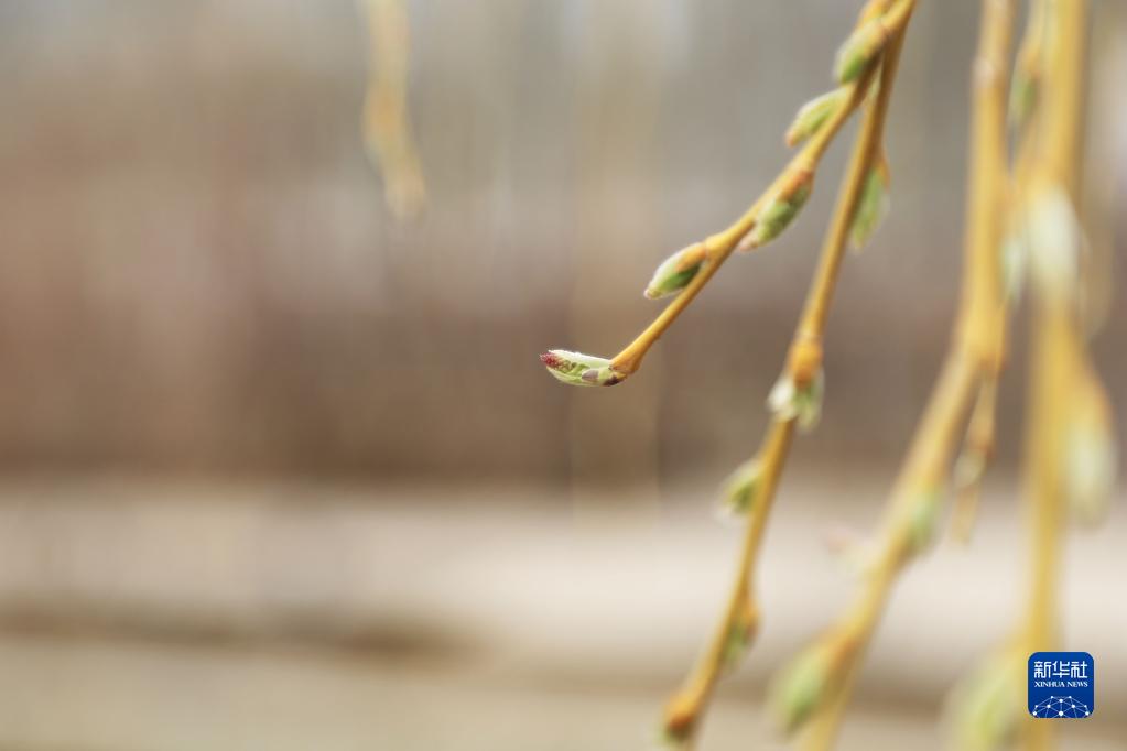 3月22日在甘肃省定西市安定区一处公园内拍摄的刚吐出嫩芽的柳枝。新华社发(王克贤 摄)