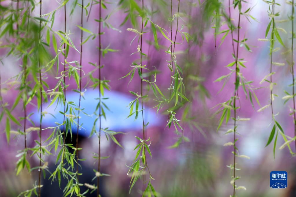 3月22日在贵州省铜仁市玉屏侗族自治县朱家场镇混寨村拍摄的柳枝。新华社发(胡攀学 摄)