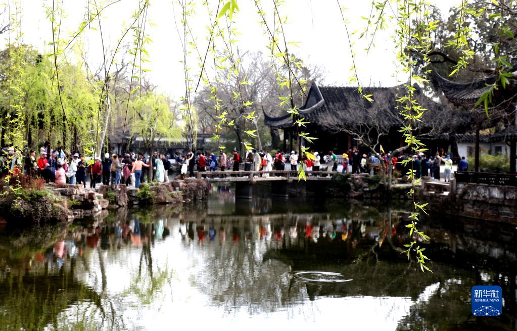 3月15日,游客在江苏省苏州市古典园林拙政园观光游玩。新华社发(杭兴微 摄)