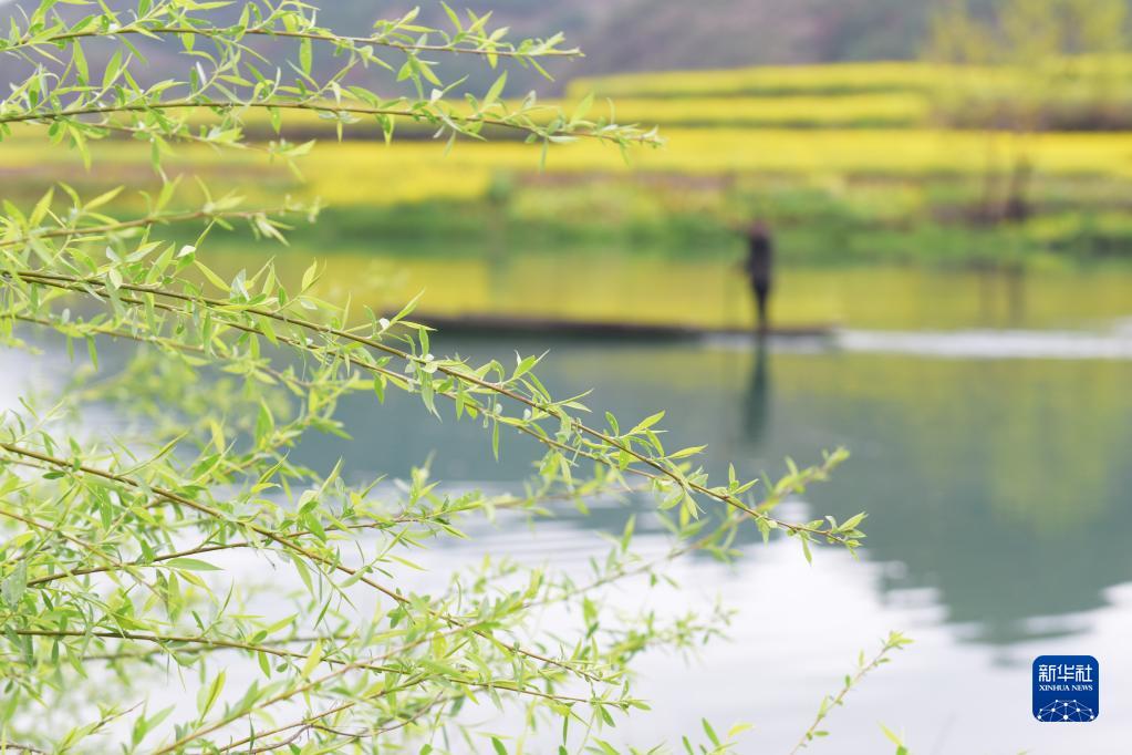 3月22日,在贵州省黔东南苗族侗族自治州岑巩县注溪镇周坪村,柳树枝繁叶茂。新华社发(唐鹏摄)