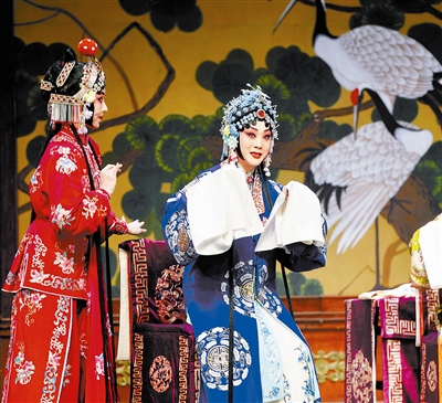 图为王艳(右)在剧中扮演穆桂英。今晚报记者 庞剑摄