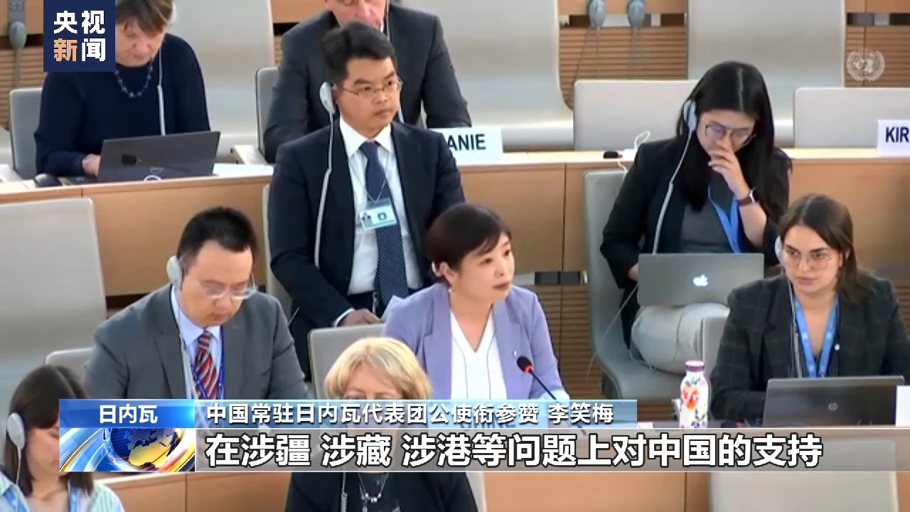 中国常驻日内瓦代表团公使衔参赞 李笑梅:美国等一些国家出于政治目的,编造散布虚假信息,在人权理事会翻炒涉华问题,攻击抹黑中国。近百国连续在人权理事会以多种方式发声表达在涉疆、涉藏、涉港等问题上对中国的支持。