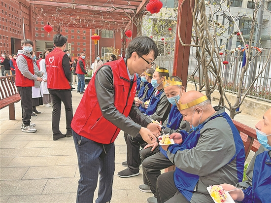 3月20日,湖南中烟市场营销中心西北片区的20余名职工志愿者组成服务队,来到陕西省渭南市社会福利院看望特困供养人员和托养老人,为他们送上慰问品,陪他们聊天、做游戏,让他们备感温暖。通讯员 唐明峰 摄