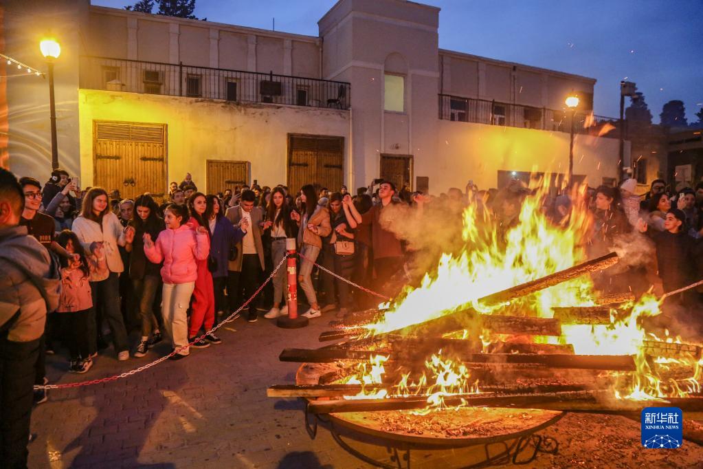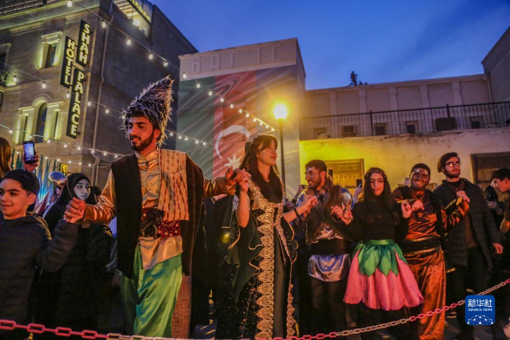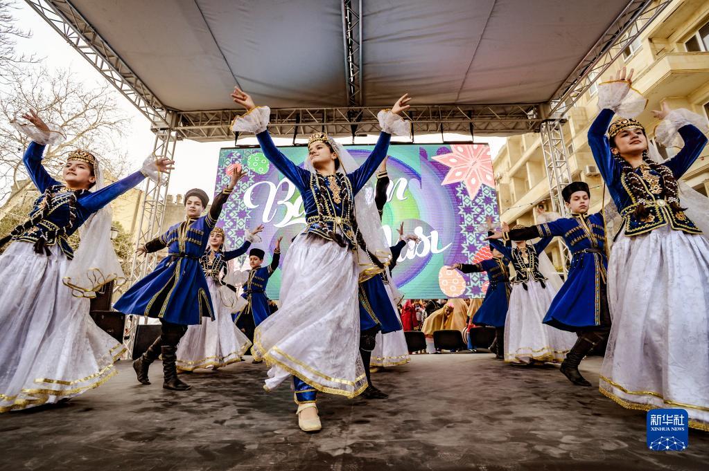 3月19日,人们在阿塞拜疆首都巴库举行庆祝活动,迎接即将到来的诺鲁孜节。新华社发(巴巴耶夫摄)