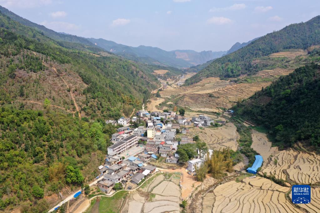这是广西德保县东凌镇那王小学所在的山村(3月22日摄,无人机照片)。