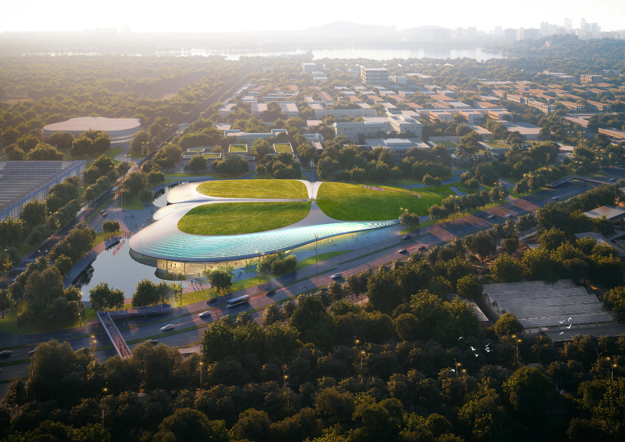 随着工程钢结构封顶,充满时代感、科技感和诗意的建筑表达正逐步被建设者从概念变为现实。作为整个建筑最为吸睛的亮点,“飞行器”造型的曲面异型钢结构屋面给项目团队带来了极致的考验。项目总工程师张帅介绍,项目钢屋盖结构几乎全部由曲线构成,这意味着构成屋盖结构的钢杆件交汇处,存在着大量无法定位在同一平面的节点,必须逐一节点“细抠”每一处造型线条,才能确保曲面造型施工时完整准确地还原。