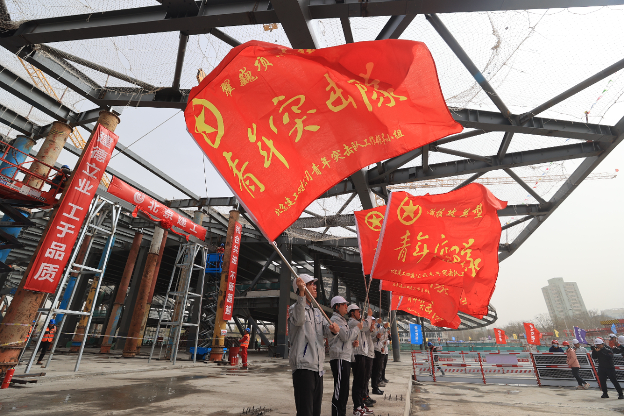 面对紧张工期进度,参战青年员工组建6支青年突击队“攻坚克难”,在施工作业面划分流水段,优化施工排布,全力冲刺结构施工节点目标。自2022年12月12日地下钢柱首吊至今,中关村论坛永久会址项目主体钢结构施工历经96天,累计完成3000吊次,近8400吨主体钢结构安装,最终力保钢结构施工如期完成。