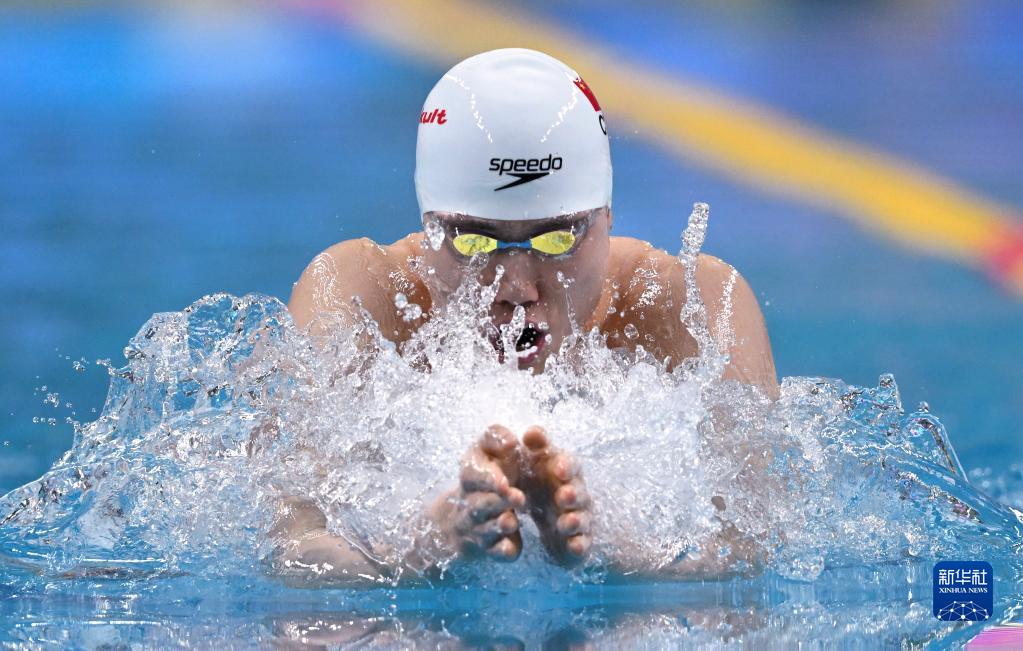 3月23日,上海队选手覃海洋在男子200米蛙泳决赛中,他以2分07秒60的成绩获得冠军。新华社记者 雒圆 摄