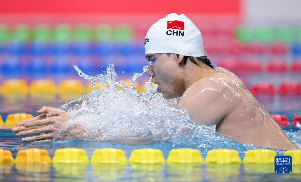 3月23日,上海队选手覃海洋在男子200米蛙泳决赛中,他以2分07秒60的成绩获得冠军。新华社记者 夏一方 摄