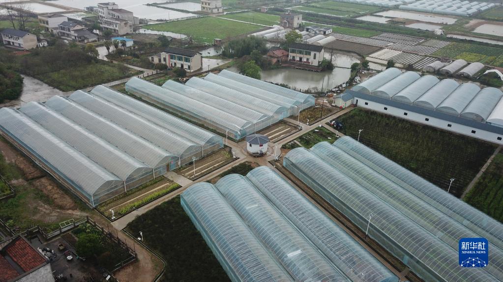 这是3月23日拍摄的位于湘潭市雨湖区姜畲镇青亭村的多功能育秧大棚(无人机照片)。新华社记者 陈泽国 摄