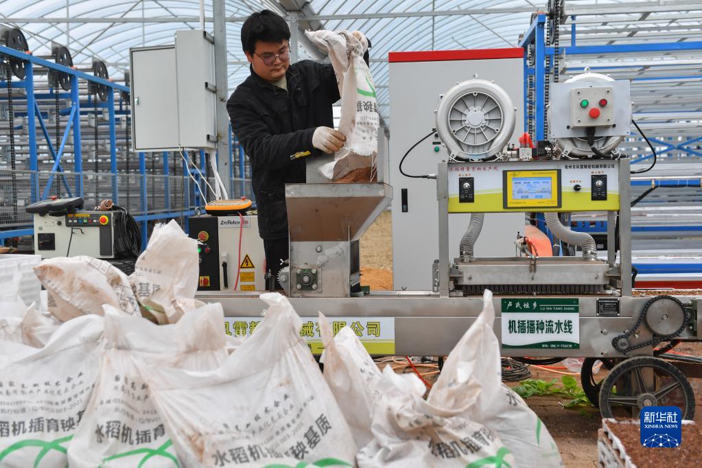 春耕备耕时节,在湖南省湘潭市雨湖区姜畲现代农业示范园里,当地农民通过技术培训,运用5G智慧农业系统、水稻精量育秧机、智能水肥一体化系统、循环运动式育秧机、农业机器人等智能化系统和设备进行育苗,有效提高了劳动效率和种苗质量,助力春耕生产。