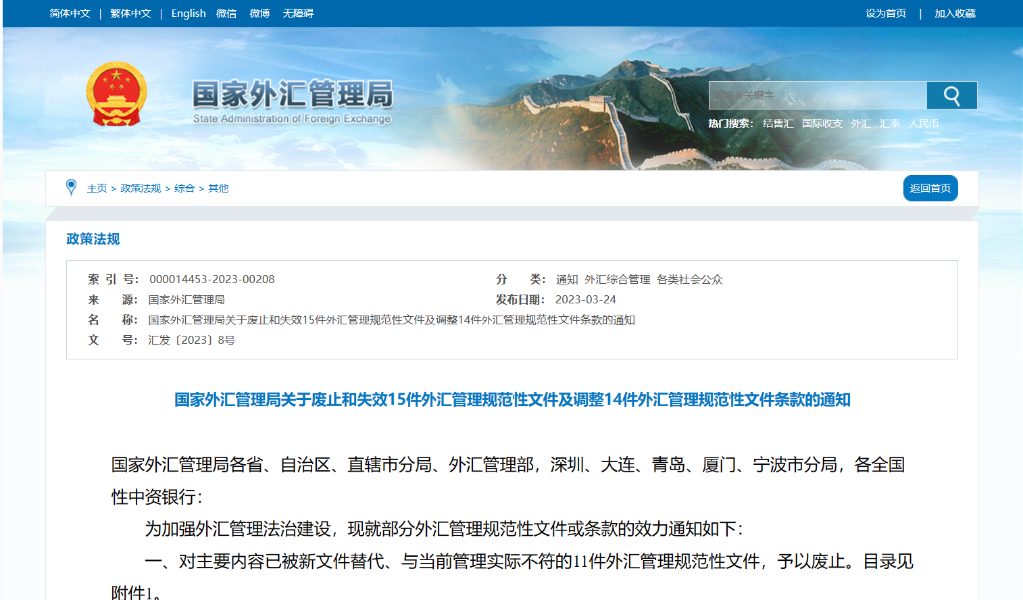 原标题:外汇局发布通知废止11件外汇管理规范性文件