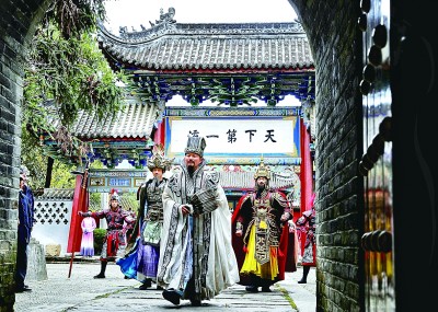 《出师表》剧组演员在勉县武侯祠景区内巡游 光明日报记者 闫汇芳摄