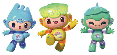杭州2022年亚运会吉祥物“宸宸”“琮琮”“莲莲”,设计者为中国美术学院张文、杨毅弘。