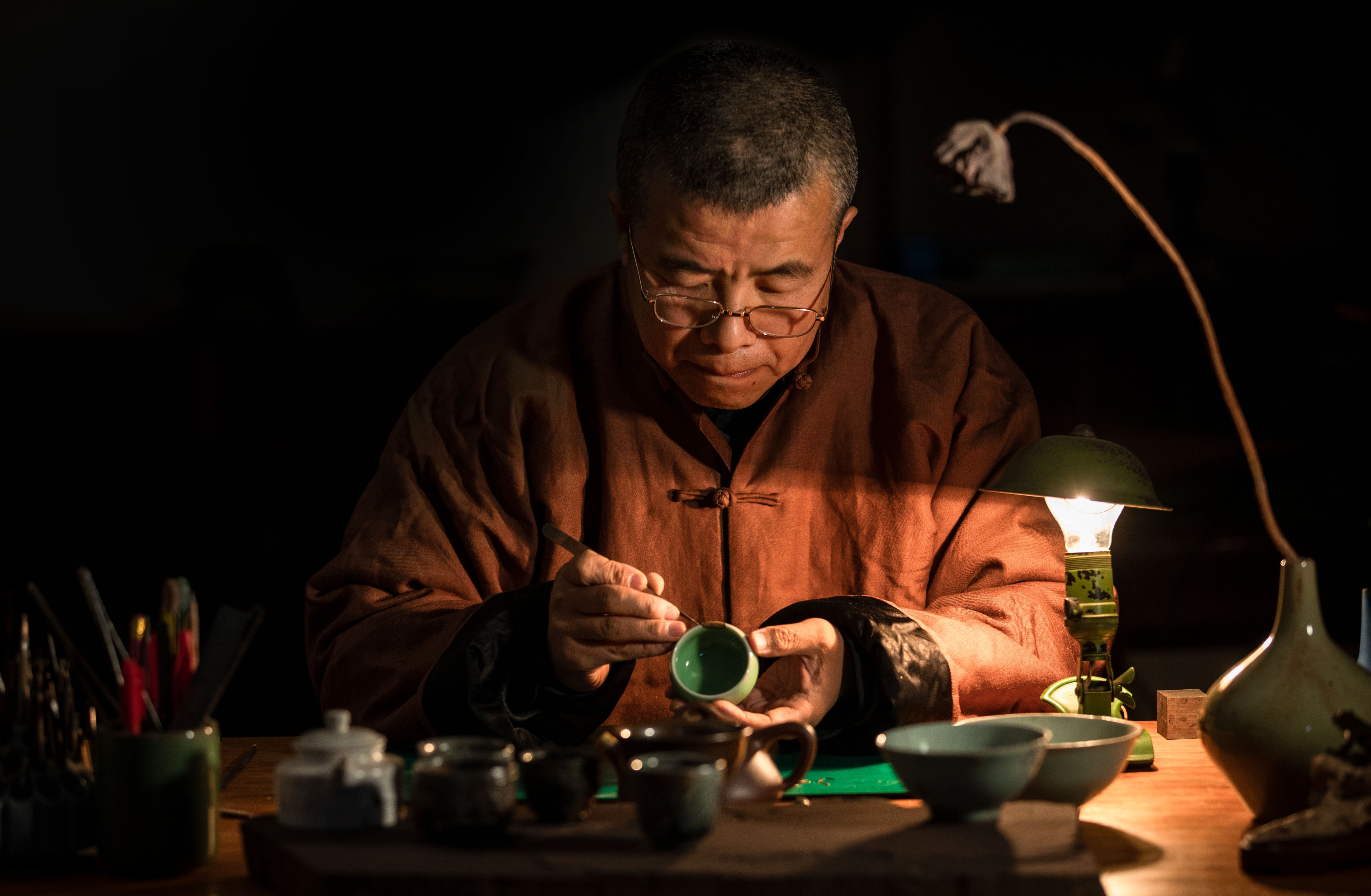 随着时代的快速发展,这项技艺已渐失传。而如今,锔瓷作为非物质文化遗产又重新回到了大众的视野。在山西太原就有一位默默传承着这门古老手艺的能工巧匠——太原市级非物质文化遗产项目锔瓷代表性传承人郭智军。他埋头于自己的一方天地,使破碎的瓷器重生并焕发新的光彩。