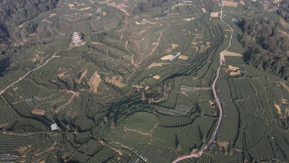 这是位于雅安市名山区红星镇的万亩观光生态茶园(无人机照片)。新华社记者 胥冰洁 摄