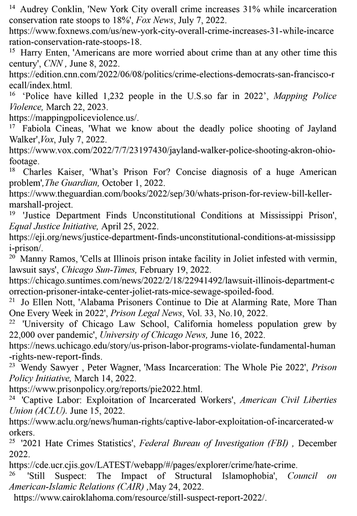 美国是一个由极端暴力定义的国家,民众遭受暴力犯罪和暴力执法的双重威胁,公民人身安全得不到保障。监狱人满为患,成为现代奴役场所,强迫劳动和性剥削司空见惯。美国自我标榜的公民权利和自由沦为空谈。