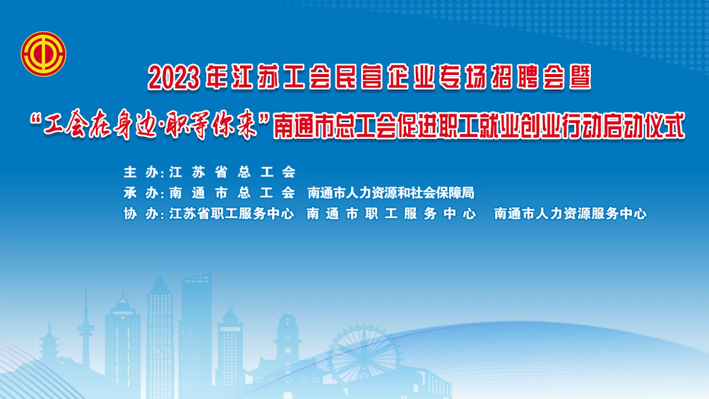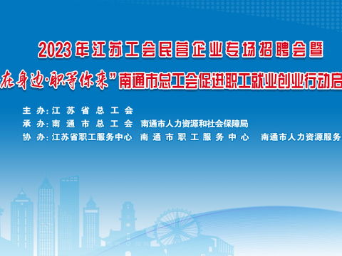 直播回顾丨2023年江苏工会民营企业专场招聘会暨“工会在身边 职等你来”南通市总工会促进职工就业创业行动启动仪式(一) 3月28日9:00,2023年江苏工会“职等你来”线上招聘活动民营企业专场,服务对象为转岗待岗职工、困难职工家庭成员及其子女、新就业形态劳动者及其家属等。企业概况、企业文化招聘职位、福利待遇......现场为你一一解答,足不出户轻松撩到心仪好工作。中工网首页、微博、视频号同步直播!