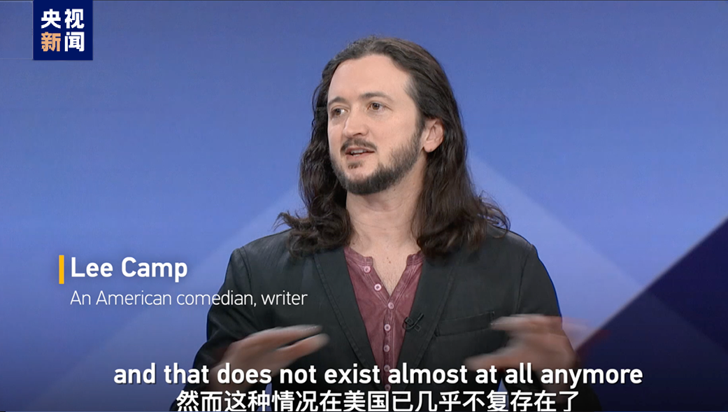 著名脱口秀演员李·坎普(Lee Camp)从美国社会的金钱政治和社会贫富差距出发,揭批美国民主的虚伪性。他认为美国人民正身处寡头政治中,他们被精英商业阶层统治,民主早已被扔出窗外。他表示,美国对中国展现出来的不只是嫉妒,它是将中国视为一种威胁。美国就是一个“统治帝国”,希望所有国家都臣服于它。他把美国形容为一个通过“吸血鬼系统”来压榨劳动力,攫取资源的“吸血鬼国家”。他举例表示,美国超过2%份额的出口产品是血浆,众多处于贫困阶层的美国人正在不得已以30美元的单价出售自己的血浆,来换取食物维持生计。