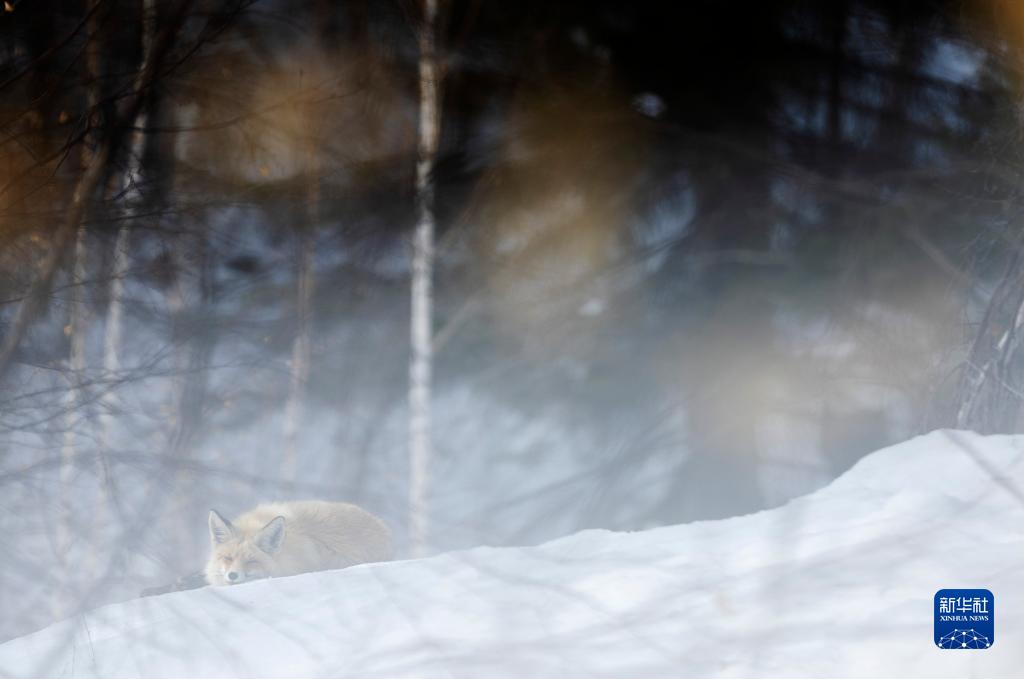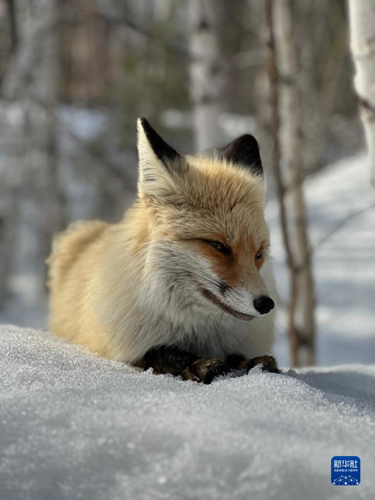 3月29日,一只赤狐在喀纳斯风景区休憩。新华社记者 费茂华 摄
