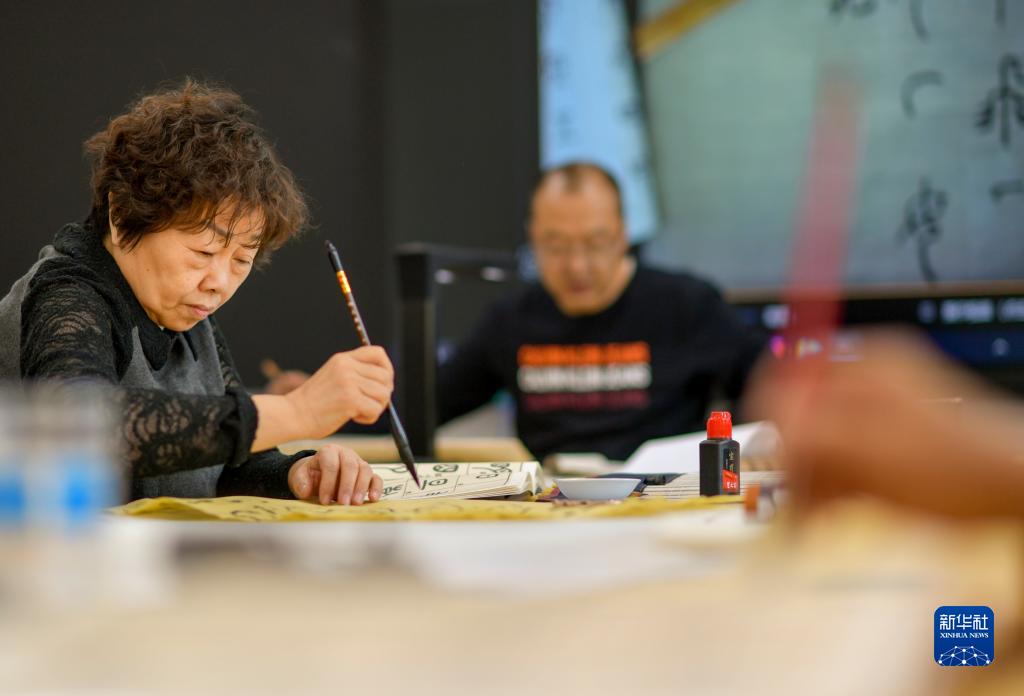 3月27日,学员在书法课上学习。新华社记者 王菲 摄