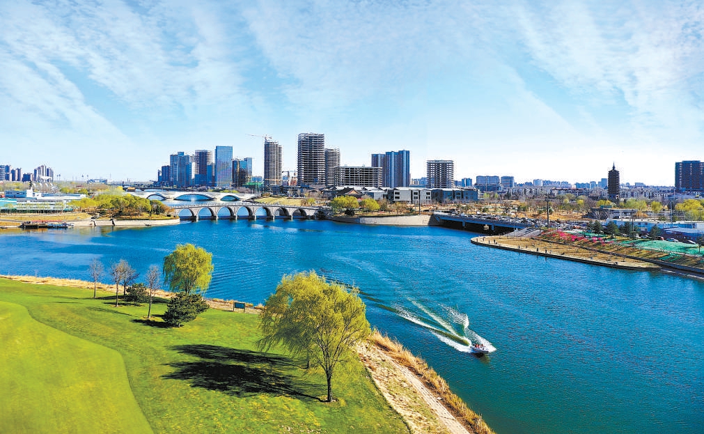 春日里的副中心五河交汇处,“三庙一塔”与运河商务区古今相济,水城共融,一幅运河复兴的壮丽美景日渐丰盈。北京日报特约摄影 马文晓