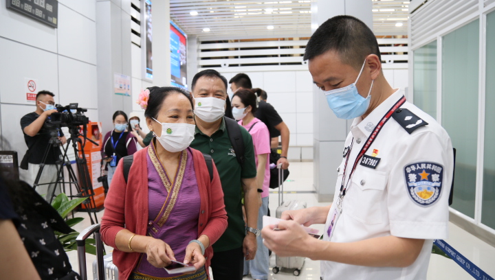 这是西双版纳国际机场受疫情影响停航后的首个入境航班。为新型冠状病毒感染“乙类乙管”后移民管理优化政策措施有效落地,西双版纳边检站采取提前开足人工查验通道、加强现场分流引导、增设咨询服务等多项措施,同时积极协调航空公司,提升出入境旅客信息申报率,安排充足警力维护保障,确保为旅客提供便捷高效的通关服务。