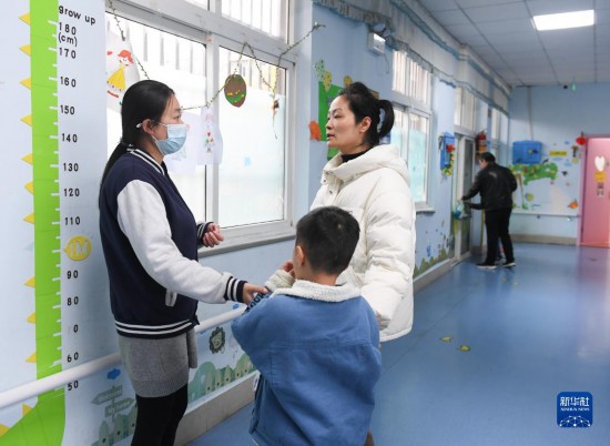 3月29日,一名家长(左三)在课后向老师了解孩子的状况。