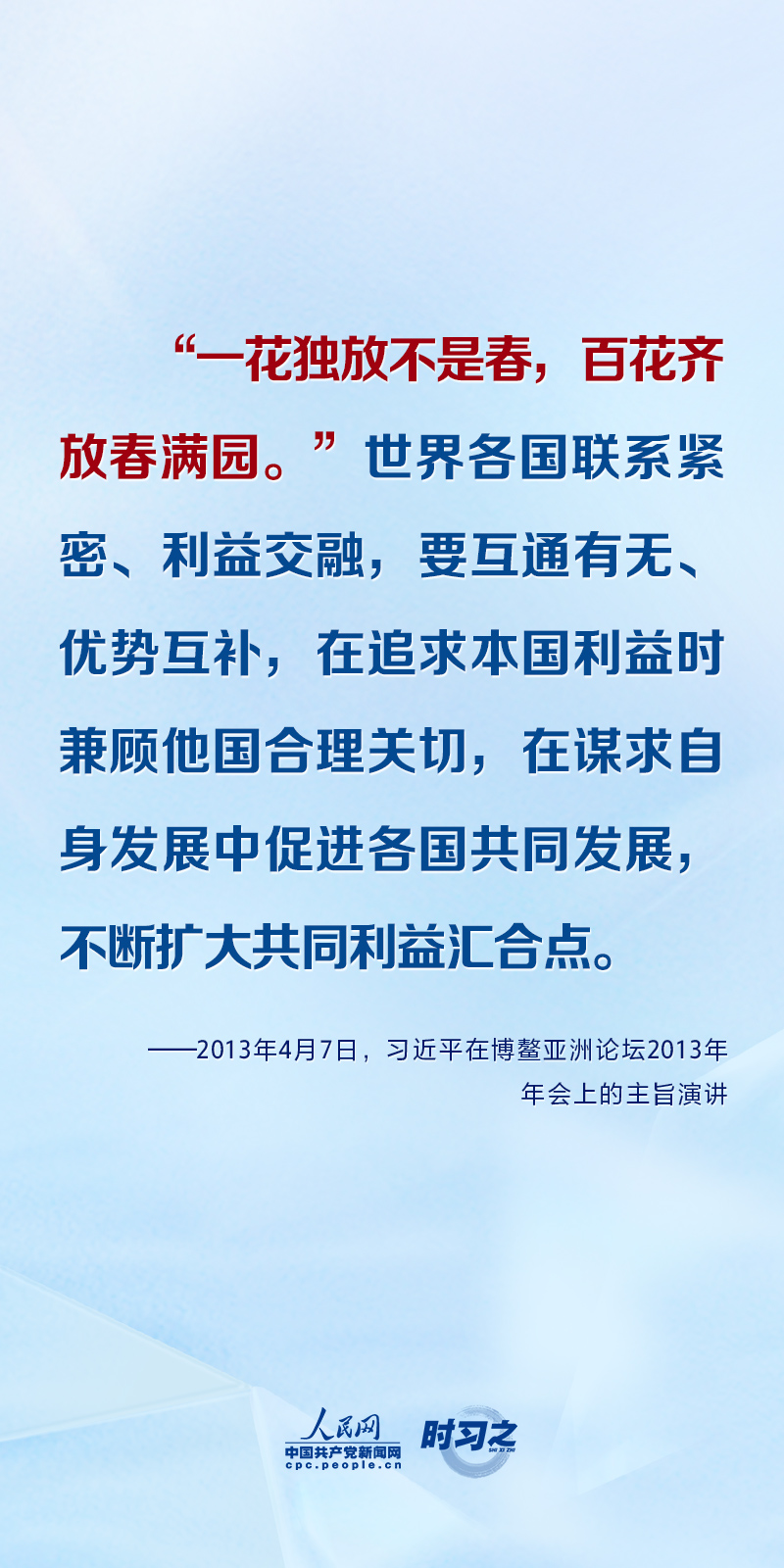 2013年以来,习近平主席5次在博鳌亚洲论坛年会上发表主旨演讲,旁征博引、妙语连珠,为共创亚洲和世界美好未来贡献了中国智慧。